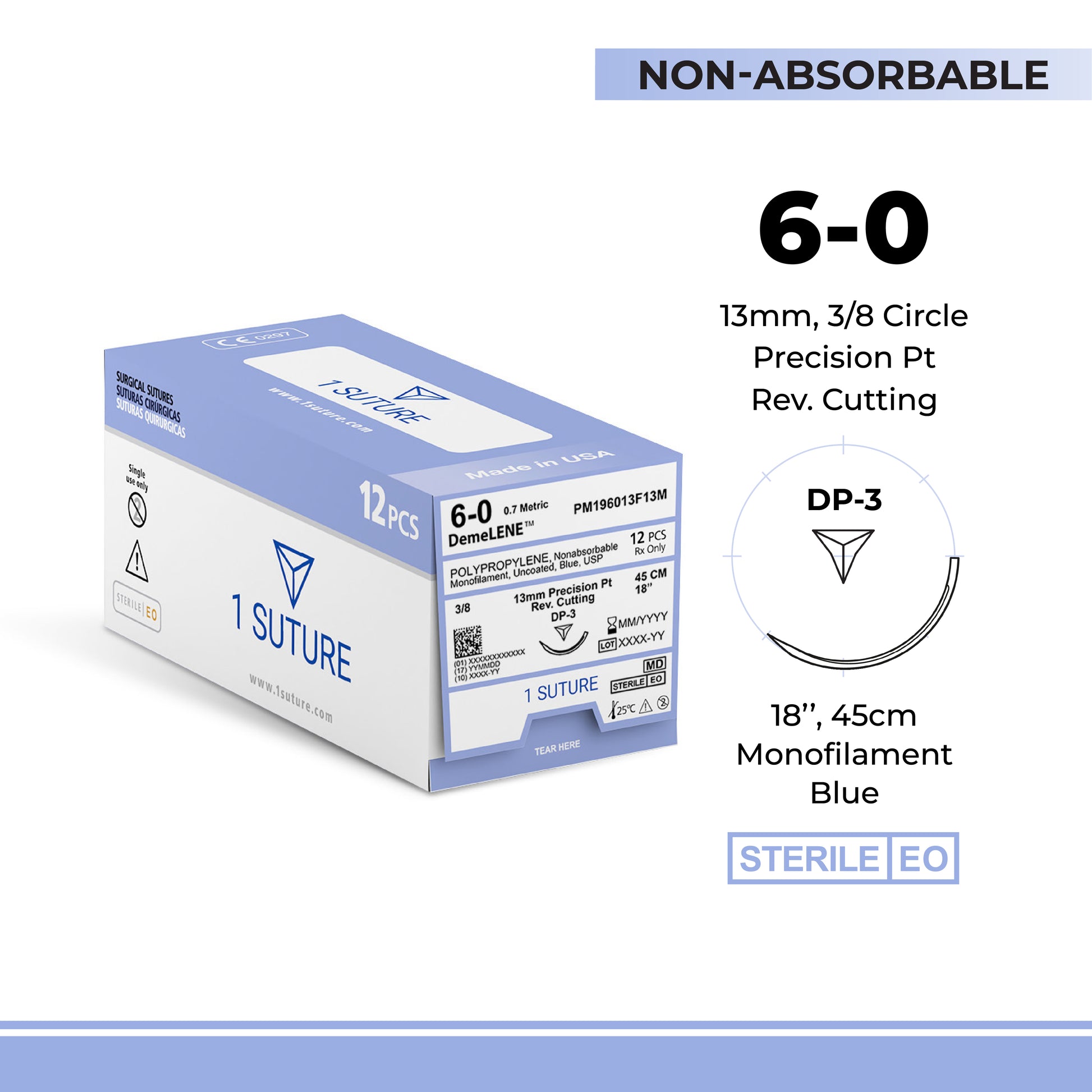 Ultra Sharp Polypropylene (Prolene), Box of 12 Sutures